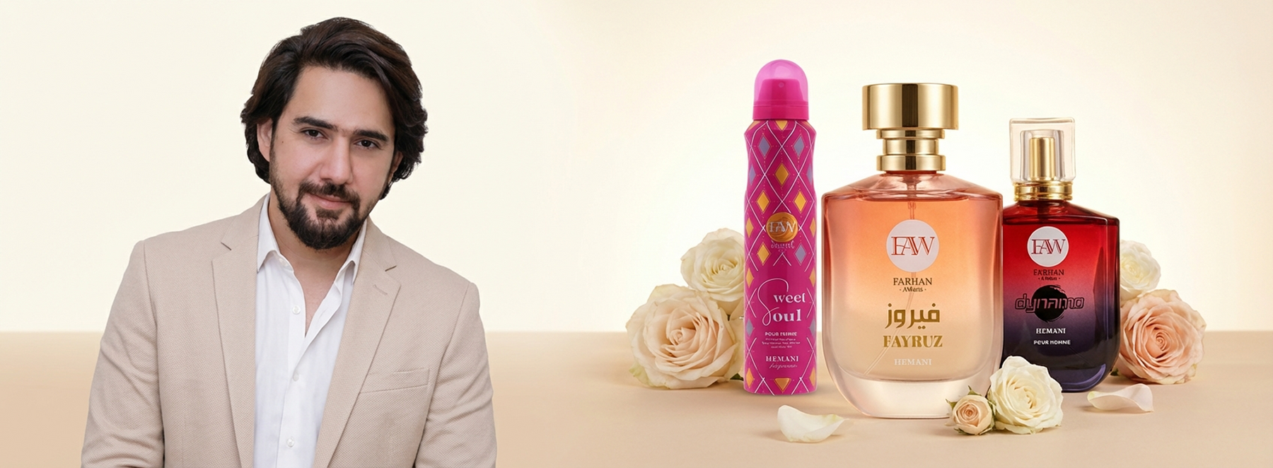 Founded under the guidance and vision of Farhan Ali Waris, one of Pakistan's most iconic celebrities and reciters, FAW Fragrances is a symbol of quality, passion, and heritage. Each fragrance is thoughtfully designed to resonate with individuality and leave a lasting impression.